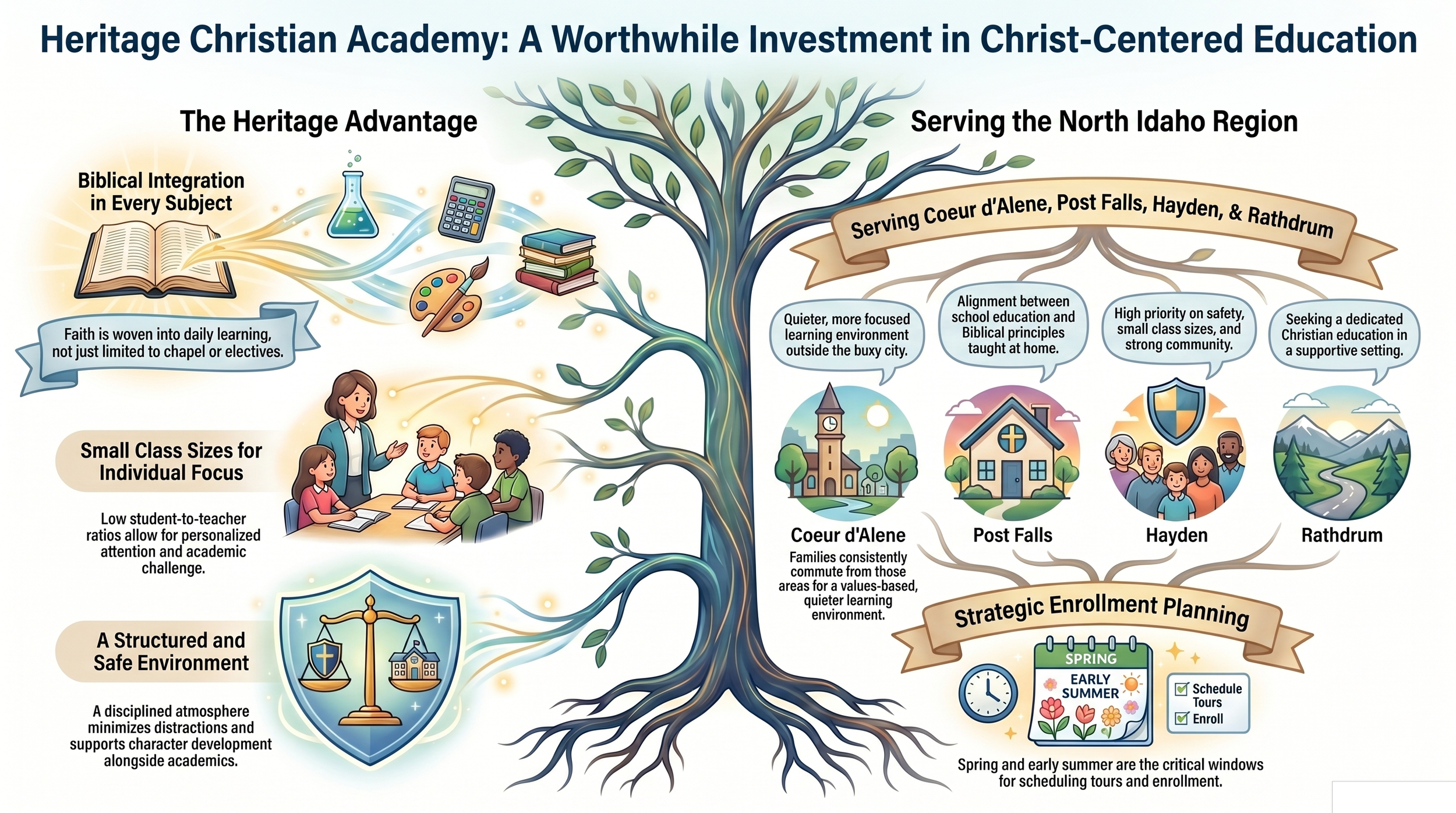 For families in Post Falls, Heritage Christian Academy provides a nearby option for Christ-centered education without sacrificing academic standards.